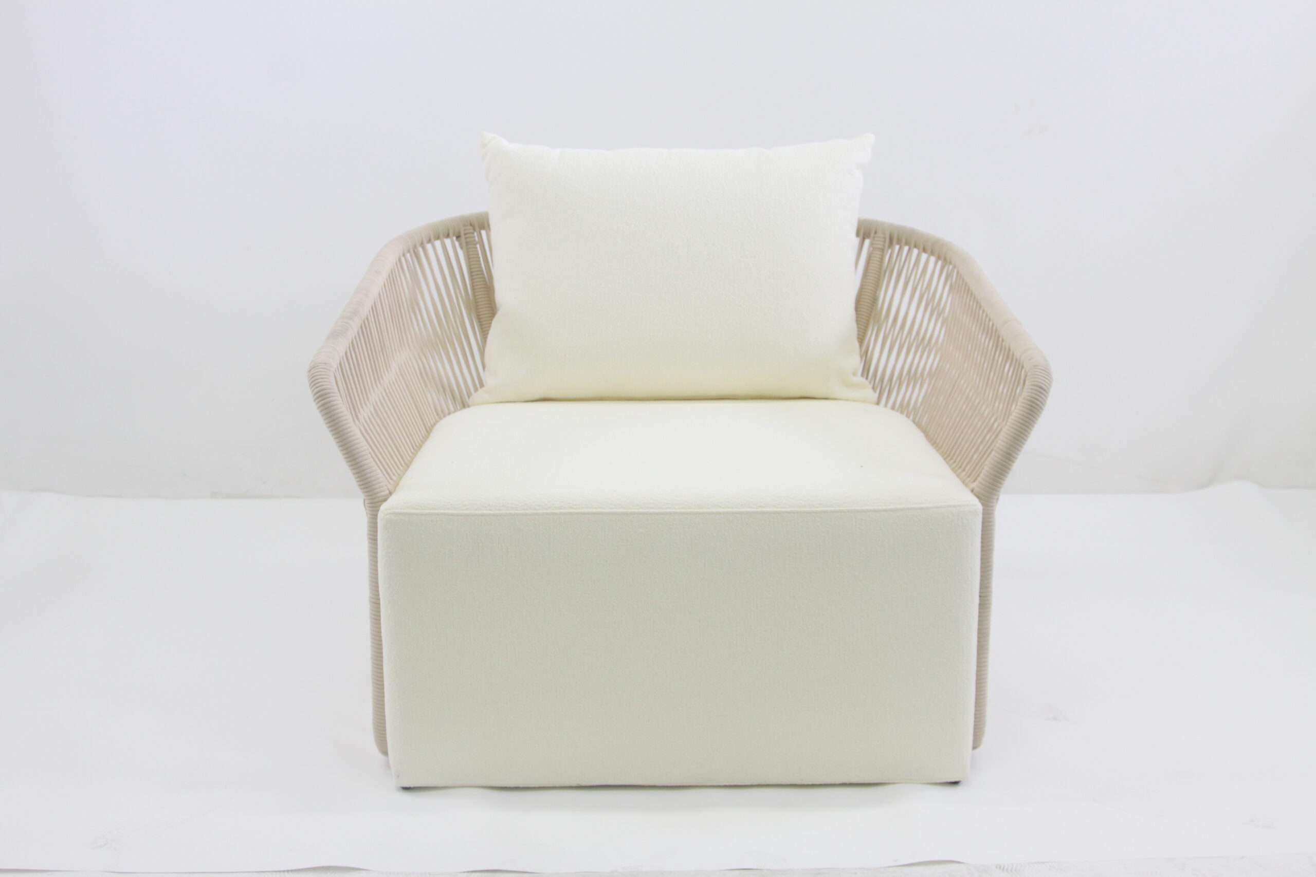 u bež boji koja uključuje dvosjed, stolić i dvije fotelje.Moderan